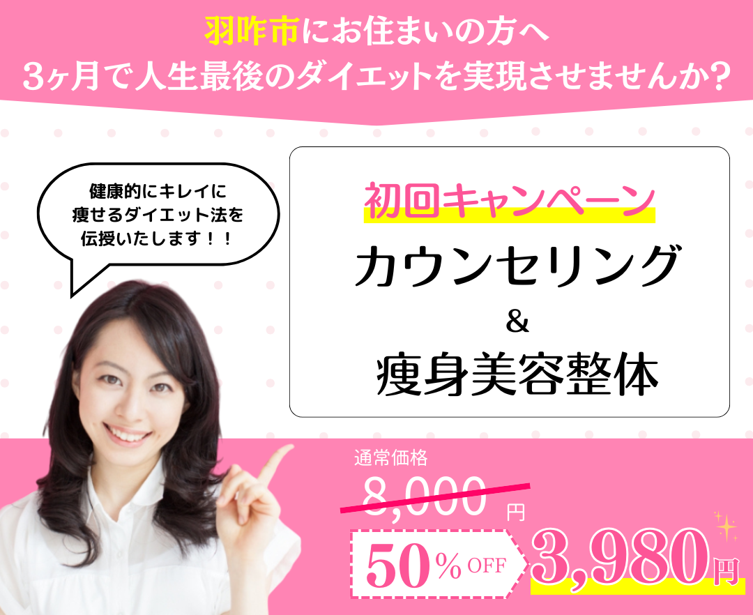 初回のカウンセリングなどを踏まえダイエット計画をお話させていただき、ご納得いただいてからダイエットコースの施術を行なっていきます!当店の人生最後のダイエットコースを「ぜひやってみたい!」思っていただいた方のみのご案内となりますので、お気軽にお越しください。